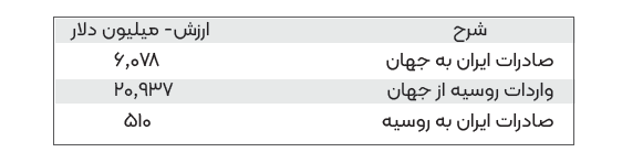 و مواد غذایی به فدراسیون روسیه، همچنان سهم کشورمان از بازار حدودا 34 میلیارد دلاری